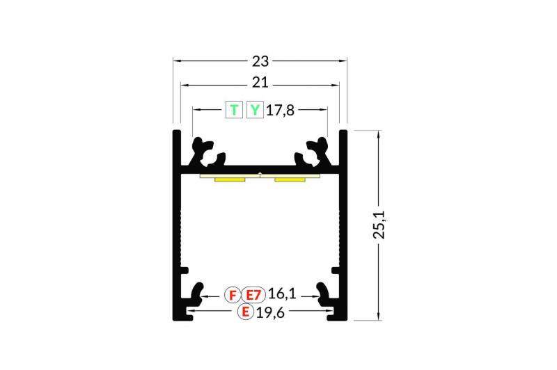 ENGITECHS PROFILE ALU A SUSPENDRE L.2M P.25.10MM SANS REBORD l.21MM + CAPOT CLIPANT BLANC REF : PR2003F-BLANC
