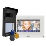 Kit vidéo soul couleur 2 fils non polarisé wifi 1 appel - contenant : - 1 moniteur mains-libres couleur 7'' tactile wifi avec mémoire d'image - 1 platine de rue vidéo zamac - contrôle d'accès intégré avec 5 badges - 1 alimentation