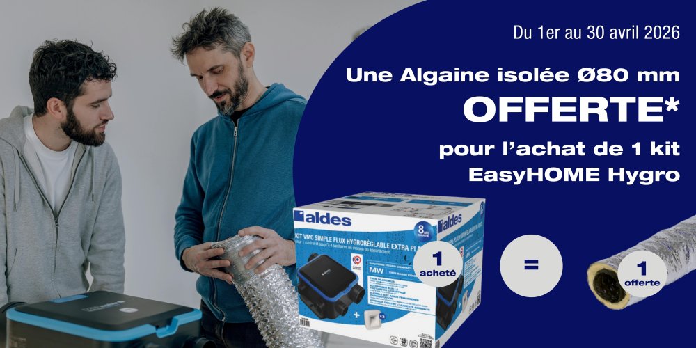 1 kit VMC Aldes EayHOME Hygro acheté c'est 1 gaine Algaine isolée Ø80 OFFERTE !