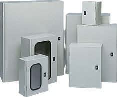 - Type de coffrets étanches : couleur gris clair RAL 7035, versions portes opaques et transparentes.